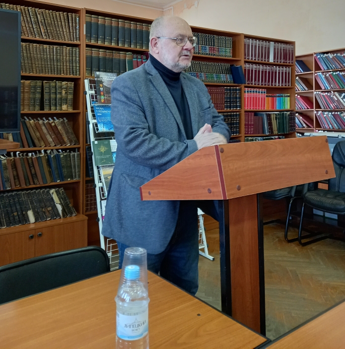 В этом году приглашенными лекторами на научно-практическом семинаре были преподаватель ВГУ, профессор, д-р ист. наук Минаков А.Ю., он познакомил слушателей с историей становления и развития научной библиотеки нашего университета, а также гл. хранитель музейных предметов ВОХМ им. И.Н. Крамского, преподаватель ВГУ Малик Ю.С., прочитал лекцию на тему: Культурно-просветительская деятельность университетской библиотеки (на примере музейной работы ВОХМ им. И.Н. Крамского).