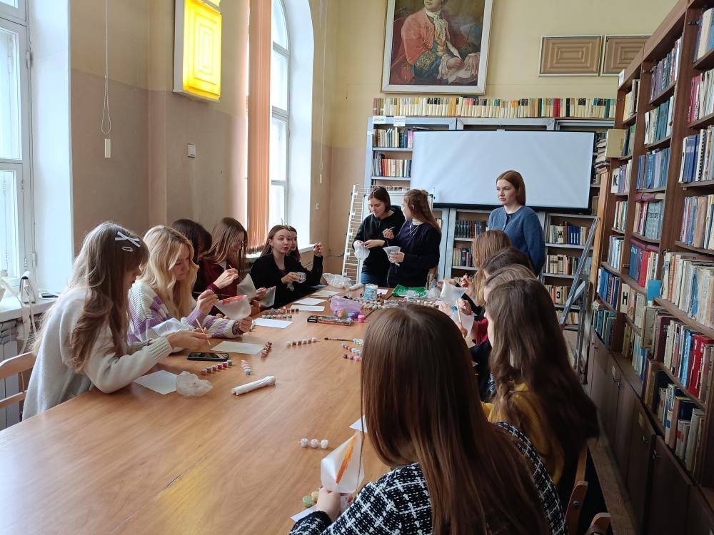 | Весны очарование | 08 04 2026 | | 4 марта в отделении обслуживания художественной литературы прошло мероприятие, посвященное международному женскому дню 8 марта "Весны очарование". Провелась интеллектуальная игра, в которой приняли участие студенты 1-го курса филологического факультета (Библиотечно-информационная деятельность).