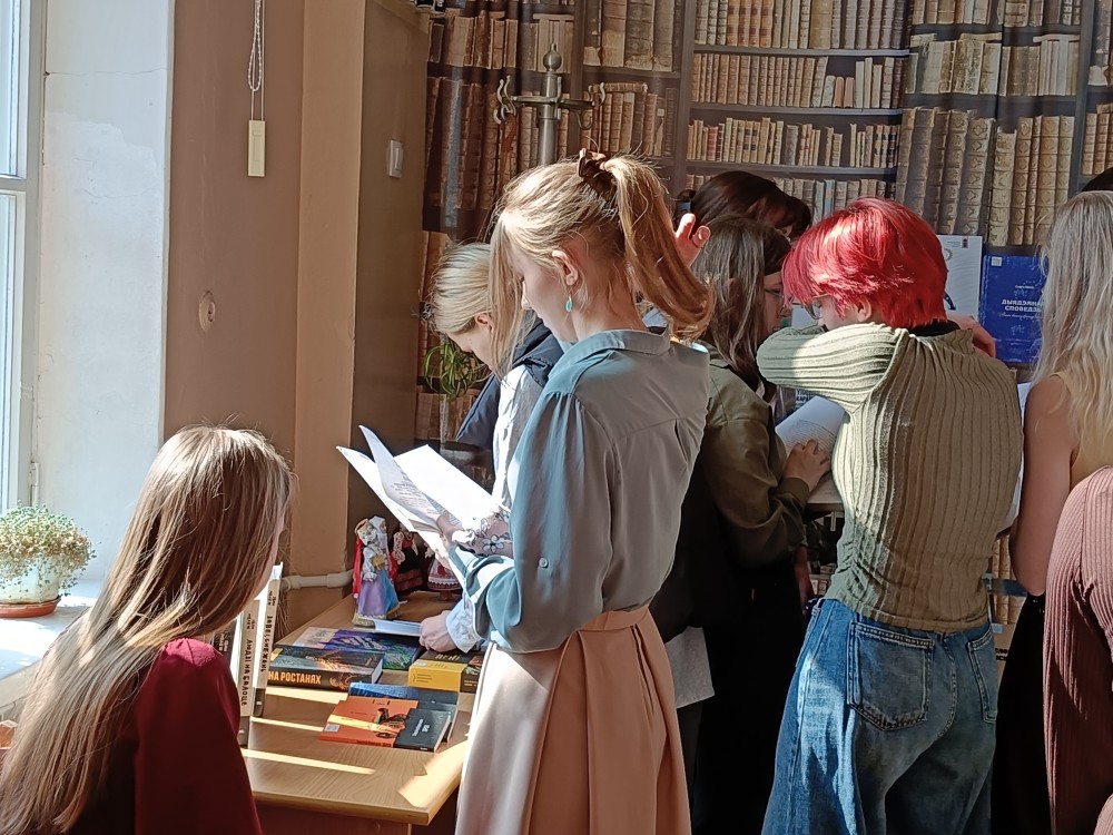 | Беларусь в наших сердцах | 17 04 2026 | | 3 апреля в отделе обслуживания ОХЛ прошел открытый просмотр выставки «Беларусь в наших сердцах» , посвященной дням Беларуси. Студенты 1 курса филфака направления БИД, познакомились с выставкой, организованной студентами 2 курса. На витринах были представлены книги, написанные о белорусской культуре, архитектуре и истории страны. Также были представлены белорусские авторы, которые издавались как на русском, так и на белорусском языках. Сотрудники отделения провели небольшой экскурс в историю Беларуси и рассказали о выставленных на витринах книгах.